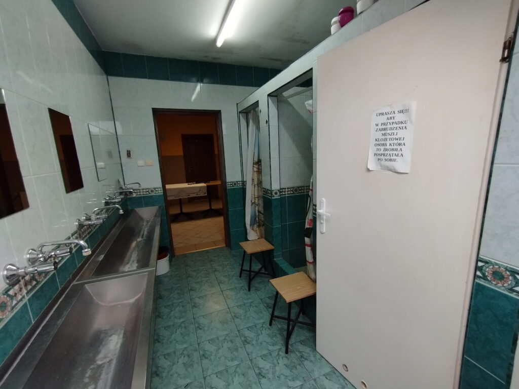 - łazienka z prysznicami